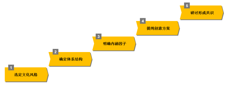 4、提純創(chuàng)意方案:由專業(yè)人士根據(jù)既定的文化內(nèi)涵提出文化理念的創(chuàng)意,并反復(fù)進(jìn)行研討、提純、提升,形成文化理念體系。