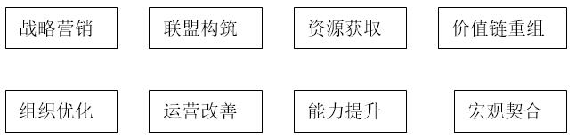 (3)資源獲?。菏欠裼欣讷@取有利戰(zhàn)略資源進行資本運作,強化資本對于戰(zhàn)略的推動作用,通過公共關(guān)系管理,構(gòu)造適宜戰(zhàn)略執(zhí)行的外部環(huán)境。