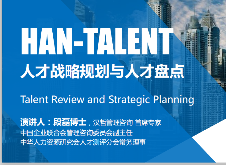 漢哲是國內(nèi)最早開展任職資格標準開發(fā)、能力素質(zhì)建模與人才盤點的服務(wù)機構(gòu),技術(shù)、方法已經(jīng)非常成熟并有幸服務(wù)于宇通客車、大族激光、金螳螂、中國空間技術(shù)研究院等各行各業(yè)的知名企業(yè),覆蓋企業(yè)員工數(shù)百萬人。結(jié)合漢哲咨詢在人才盤點領(lǐng)域的服務(wù)經(jīng)驗及研究積累,段博士就人才盤點的思路、工具和方法進行了分享。