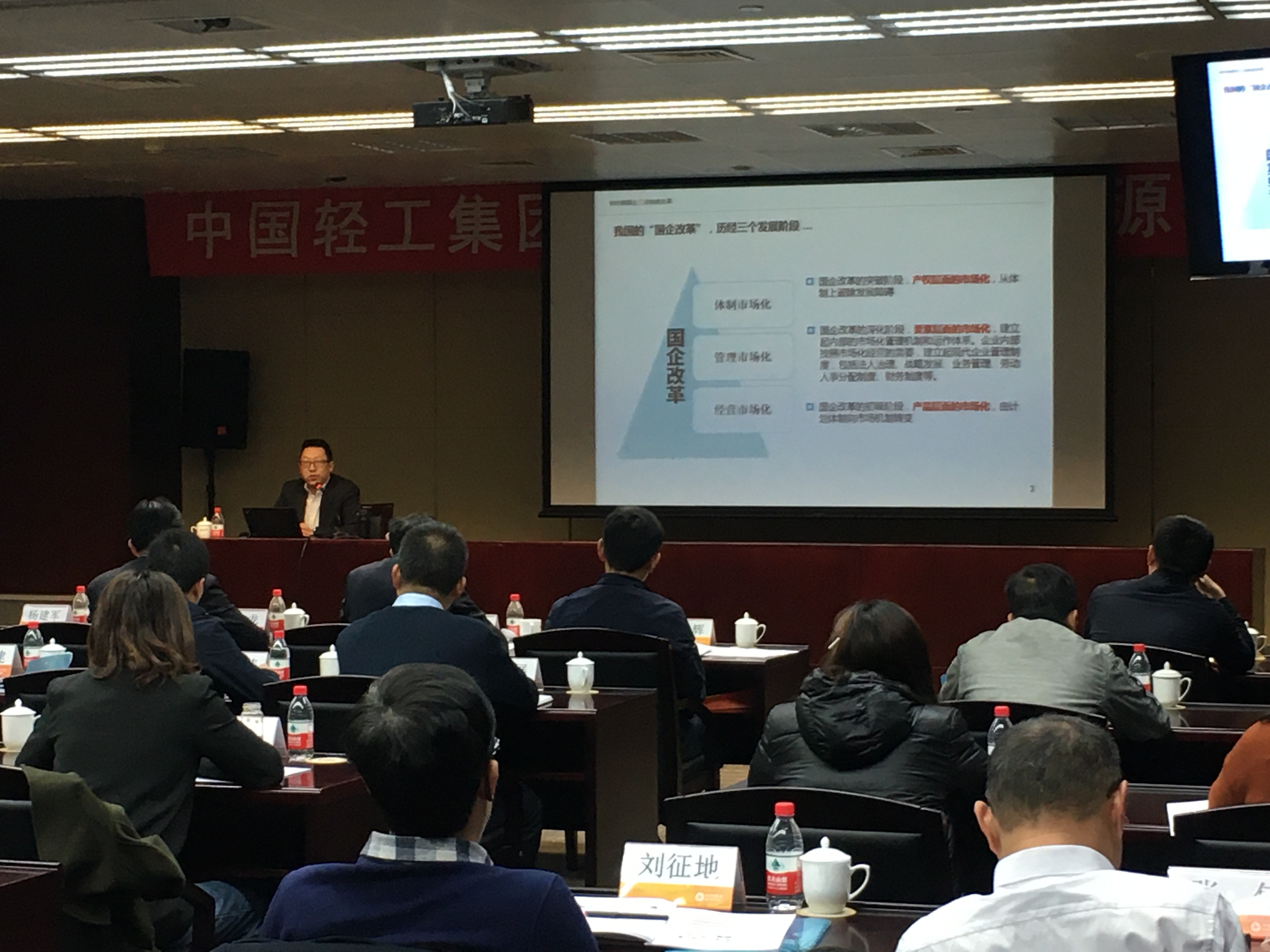 11月29日,應某培訓機構邀請,段磊博士為中國輕工集團有限公司(簡稱:中輕集團)本部及下屬單位人力資源負責人開展《新時期國企三項制度改革》專題培訓。