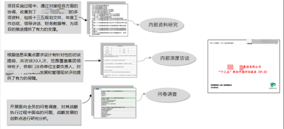 通過(guò)資料研究、高層訪談、調(diào)查問(wèn)卷等形式明確十三五戰(zhàn)略執(zhí)行情況。