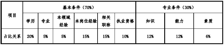 通過(guò)以下評(píng)價(jià)模型,對(duì)聘用人員進(jìn)行評(píng)價(jià)打分,并對(duì)照定檔基準(zhǔn)分,確定初步定級(jí)定檔方案,從而建立崗位等級(jí)、能力等級(jí)、任職要求的三位一體定薪規(guī)則。