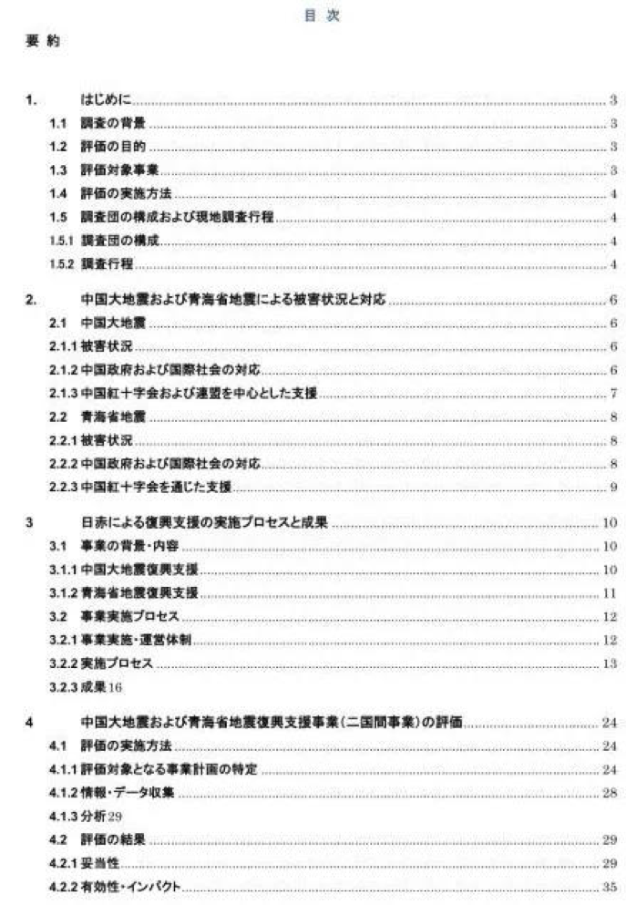 2010年4月14日,青海玉樹地震,2698人遇難。日本紅十字聯(lián)合日本雅虎等網(wǎng)站為災(zāi)民募捐,且不僅參與救災(zāi),還包括支援后期建設(shè)。最終他們將幾年支援工作用65頁的報告寫的明明白白,所有人都可以去官網(wǎng)下載。這是目錄:
