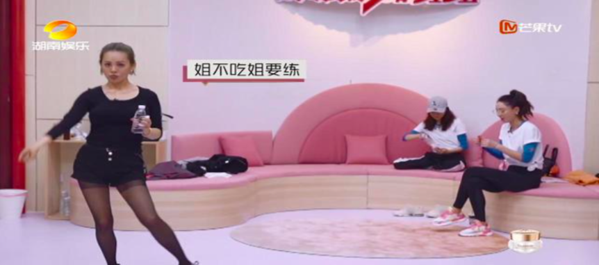 情景8:吳昕學(xué)舞蹈有點(diǎn)崩潰,坐在后面生氣,藍(lán)盈瑩(隊(duì)長(zhǎng))以為是累了,過(guò)去捏背,好讓她清醒。黃齡情緒不對(duì),都不說(shuō)話了,藍(lán)盈瑩絲毫沒(méi)有察覺(jué)。在這個(gè)團(tuán)隊(duì)里,好像每時(shí)每刻都處在一個(gè)高壓的狀態(tài)下,神經(jīng)緊繃,有點(diǎn)窒息。