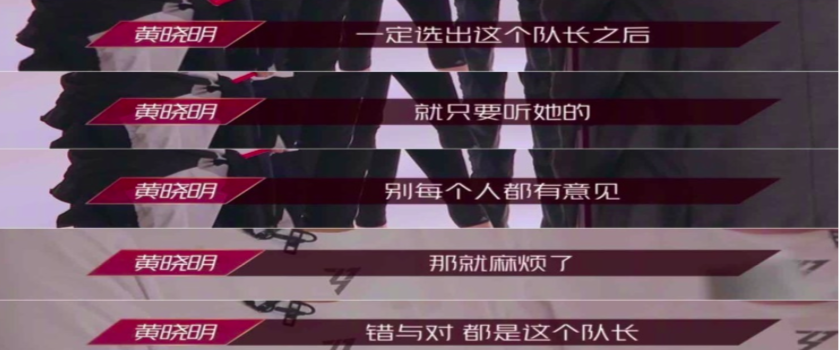 節(jié)目組聘請(qǐng)了三位具有相當(dāng)影響力的女團(tuán)專家作為評(píng)委,同時(shí)邀請(qǐng)“黃教主”作為主持人。站在以上四位“專家”的角度上,對(duì)成為團(tuán)隊(duì)leader應(yīng)該具備的能力素質(zhì)也會(huì)有自己不同的看法和意見(jiàn)。筆者從中也能提取相應(yīng)的領(lǐng)導(dǎo)力要素。