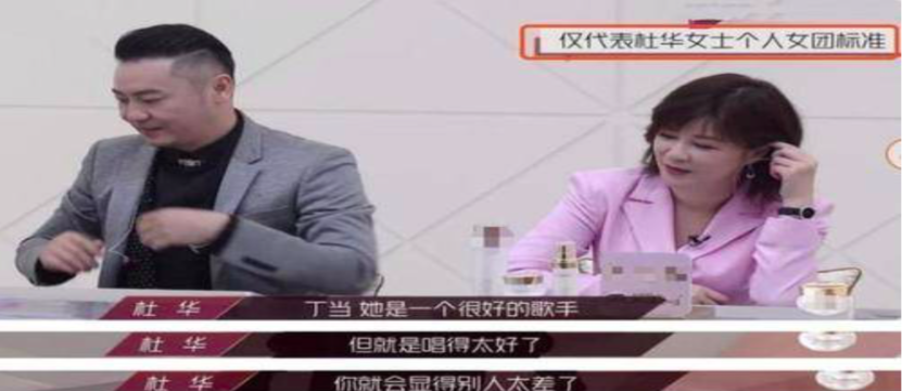 片段2:身為專業(yè)唱將的丁當(dāng),竟因?yàn)?ldquo;唱的太好”的原因,被杜華打了低分。杜華給出的解釋是:“她的能力太突出,會(huì)顯得其他人太差,所以她個(gè)人發(fā)展會(huì)比成團(tuán)要好。”