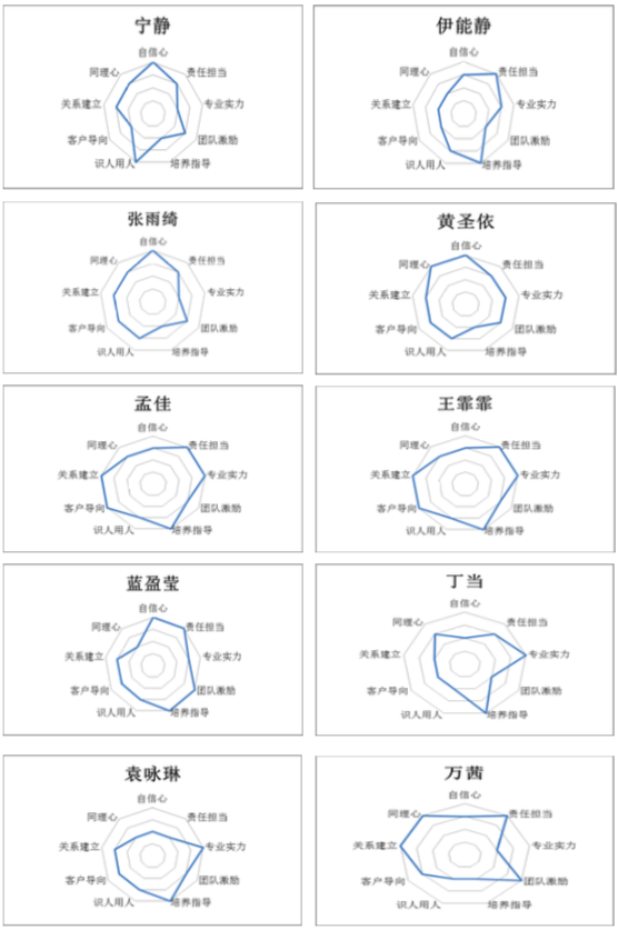 根據(jù)各個(gè)要素的定義及分級(jí)標(biāo)準(zhǔn)描述,筆者應(yīng)用漢哲咨詢的“人才測(cè)評(píng)系統(tǒng)”,對(duì)節(jié)目中的“小姐姐們”開(kāi)展領(lǐng)導(dǎo)力測(cè)評(píng)工作。