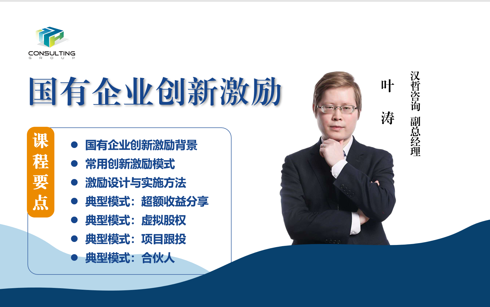 講師葉濤,漢哲管理咨詢(北京)股份有限公司副總經(jīng)理,高級咨詢總監(jiān),事業(yè)部負(fù)責(zé)人、CMC國際注冊管理咨詢師,東北大學(xué)管理學(xué)碩士。