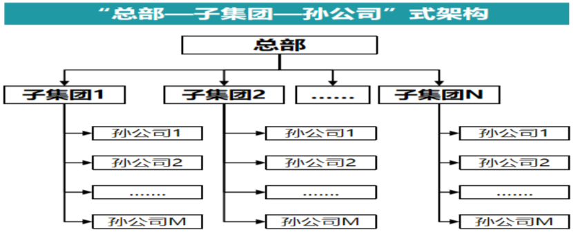 該組織架構(gòu)模式下,整個集團(tuán)從母公司到下屬成員企業(yè)在法理架構(gòu)上形成母公司、子集團(tuán)、孫公司三個層級;子集團(tuán)作為專業(yè)化的業(yè)務(wù)模塊管理平臺,對下屬孫公司進(jìn)行業(yè)務(wù)專業(yè)化管控,最終在集團(tuán)整體管控運作上表現(xiàn)為母控子、子控孫。