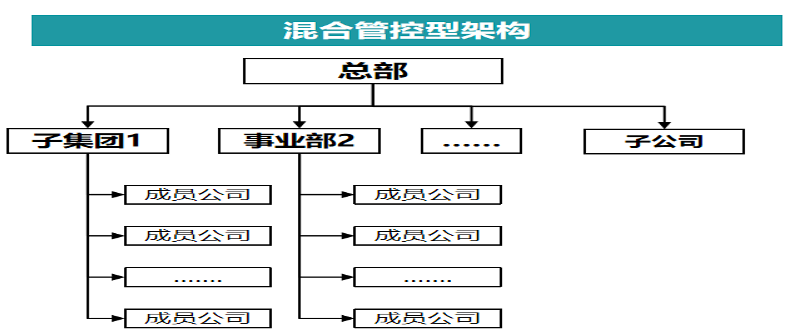 混合型管理架構(gòu)下,集團(tuán)針對不同的業(yè)務(wù)模塊或業(yè)務(wù)區(qū)域形成了母子、總分等多種法人治理架構(gòu);同時由于不同的業(yè)務(wù)成熟度及專業(yè)化、一體化管控的需要,對不同的業(yè)務(wù)模塊分別采取了母子孫、母事子、總分子等多種架構(gòu),集團(tuán)管控架構(gòu)總體上表現(xiàn)為混合式。