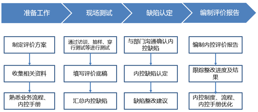 本次內(nèi)控評價流程包含四個工作步驟,涵蓋了內(nèi)控評價開展過程中的各項具體工作,實現(xiàn)了從制定評價方案到內(nèi)控測試、缺陷跟蹤、制度流程更新等完整閉環(huán)。