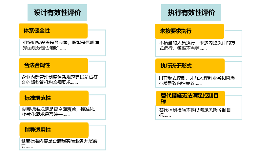 2.從內(nèi)控設計有效性和執(zhí)行有效性兩個維度進行評價。
