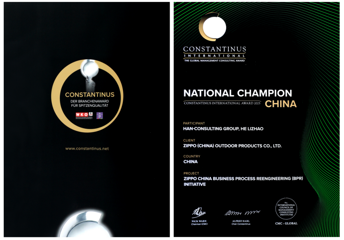 國際管理咨詢協(xié)會理事會年會的高光時(shí)刻,即號稱“咨詢業(yè)界奧斯卡”的國際君士坦丁獎(jiǎng)大獎(jiǎng)發(fā)布及頒獎(jiǎng),每年都有來自20多個(gè)國家的數(shù)百個(gè)咨詢案例競逐。本屆年會,漢哲咨詢集團(tuán)以《ZIPPO中國業(yè)務(wù)流程再造解決方案》項(xiàng)目脫穎而出,一舉獲得2025年度“君士坦丁獎(jiǎng)”國家金獎(jiǎng),這也是本年度中國管理咨詢界的唯一大獎(jiǎng)。至此,2019年以來中國已有五家咨詢機(jī)構(gòu)獲此殊榮,漢哲的這一成果也將與其他四個(gè)優(yōu)秀案例一道,載入中國管理咨詢行業(yè)的發(fā)展史冊。