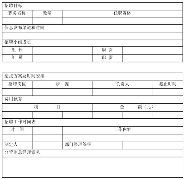 招聘的準(zhǔn)備階段,主要是招聘規(guī)劃,其主要任務(wù)是制定《招聘計(jì)劃說明書》,其中包括:招聘員工數(shù)量、招聘員工素質(zhì)、招聘目標(biāo)群體來源、招聘渠道,等等。規(guī)范的招聘計(jì)劃為企業(yè)的招聘管理提供了方向,也為招聘工作有步驟、有控制地進(jìn)行提供了保障基礎(chǔ)。