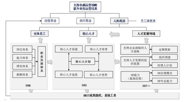 HRM、HRD、HRT++、HRIT四個(gè)部分構(gòu)成完整的操作體系,各部分相互關(guān)聯(lián)、相互支撐,形成了一個(gè)有機(jī)的整體。