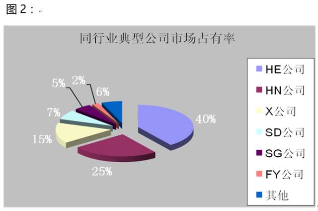 X公司所在行業(yè),國內(nèi)同行業(yè)的對手大致可以分為三大陣營,一是外資企業(yè),二是大型國有企業(yè),三是民營企業(yè),下圖就列舉了這三類企業(yè)中的代表公司的市場占有率,X公司在行業(yè)中處于第三位,在他之前的兩大公司都是大型外資企業(yè),這說明X公司的市場份額尚可,但要挑戰(zhàn)前兩者,還有一定的差距和難度。
