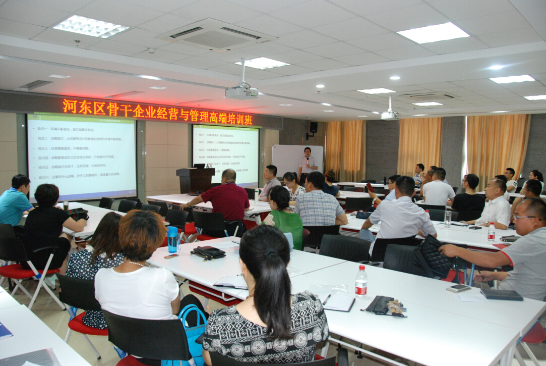 河?xùn)|區(qū)經(jīng)信局領(lǐng)導(dǎo)主持了開班儀式并做了主題發(fā)言。根據(jù)企業(yè)的需求,本次培訓(xùn)班設(shè)計(jì)了戰(zhàn)略、運(yùn)營(yíng)、人力資源三大課程單元。
