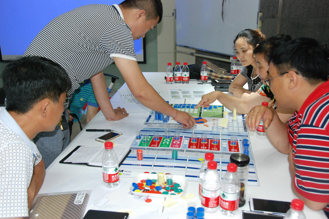 在運(yùn)營(yíng)單元,由漢哲商學(xué)院資深講師汪韋伯老師講授《企業(yè)經(jīng)營(yíng)決策沙盤模擬訓(xùn)練》,分為企業(yè)決策、預(yù)算、營(yíng)銷、控制、成本與定價(jià)、把握業(yè)務(wù)重點(diǎn)、競(jìng)爭(zhēng)策略與市場(chǎng)博弈、市場(chǎng)博弈與競(jìng)爭(zhēng)情報(bào)、績(jī)效管理與KPI設(shè)計(jì)等九個(gè)模塊,采用沙盤教學(xué)的方式,讓學(xué)員親身參與決策,體會(huì)學(xué)習(xí)要點(diǎn)。