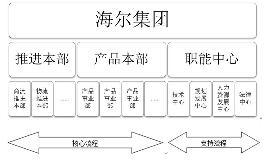 整合后,集團(tuán)形成了直接面對(duì)市場(chǎng)的、完整的物流、商流等核心流程體系,以及資金流、技術(shù)質(zhì)量管理、人力資源、設(shè)備管理等支持性流程體系。通過(guò)對(duì)原有職能結(jié)構(gòu)和事業(yè)部的重新設(shè)計(jì),將原來(lái)的職能型組織結(jié)構(gòu)轉(zhuǎn)變成了流程型網(wǎng)絡(luò)結(jié)構(gòu),垂直業(yè)務(wù)結(jié)構(gòu)轉(zhuǎn)變成了水平業(yè)務(wù)流程,形成了橫向的、網(wǎng)絡(luò)化的新流程體系。這一結(jié)構(gòu)實(shí)現(xiàn)了企業(yè)內(nèi)部組織與外部市場(chǎng)的有機(jī)聯(lián)通,從而使企業(yè)成為了一個(gè)開(kāi)放系統(tǒng),這個(gè)開(kāi)放系統(tǒng)可以通過(guò)整合各方面的資源來(lái)滿足客戶的需求,從而實(shí)現(xiàn)與用戶零距離。