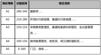 根據(jù)崗位評估預(yù)評估的結(jié)果,科研管理部部長得分1100分,科研管理部行政助理得分305分,黨群工作部部長得分805分,工會綜合干事得分240分,離退休辦主任得分470分,機加檢驗員得分200分,基本符合大家的預(yù)期。