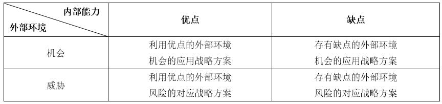 SWOT模型中的優(yōu)勢(shì)、劣勢(shì)分析著眼于企業(yè)自身實(shí)力與競(jìng)爭(zhēng)對(duì)手的比較,而機(jī)會(huì)和威脅分析則將注意力放在外部環(huán)境的變化及對(duì)企業(yè)的可能影響上。通過(guò)SWOT分析,可以幫助企業(yè)把資源和行動(dòng)聚集在機(jī)會(huì)最多的領(lǐng)域。