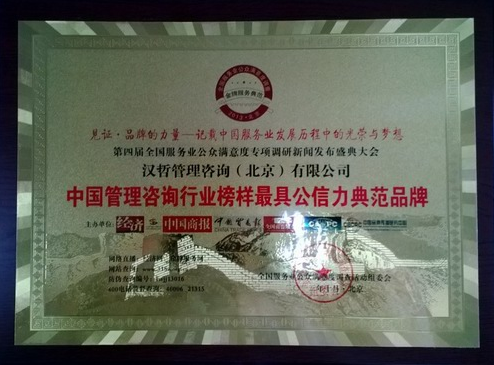 近日,漢哲管理咨詢(北京)有限公司在第四屆全國服務(wù)業(yè)公眾滿意度專項調(diào)研中榮獲“中國管理咨詢行業(yè)榜樣最具公信力典范品牌”獎。同時,漢哲咨詢集團(tuán)總裁段磊博士榮獲“引領(lǐng)行業(yè)發(fā)展杰出貢獻(xiàn)人物”獎。